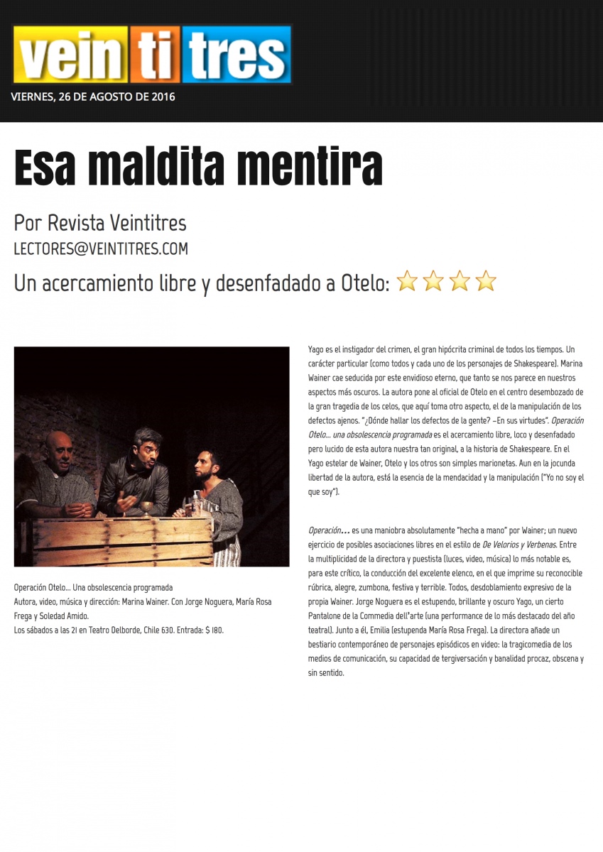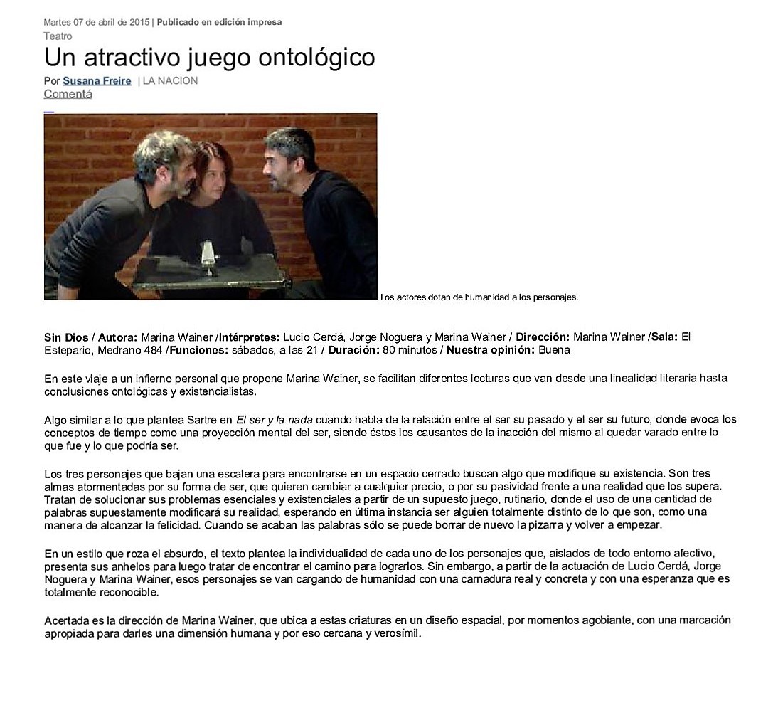 Esta obra está ternada en el Rubro Mejor Opera 2014 por la Asociación de Críticos Musicales de la Argentina