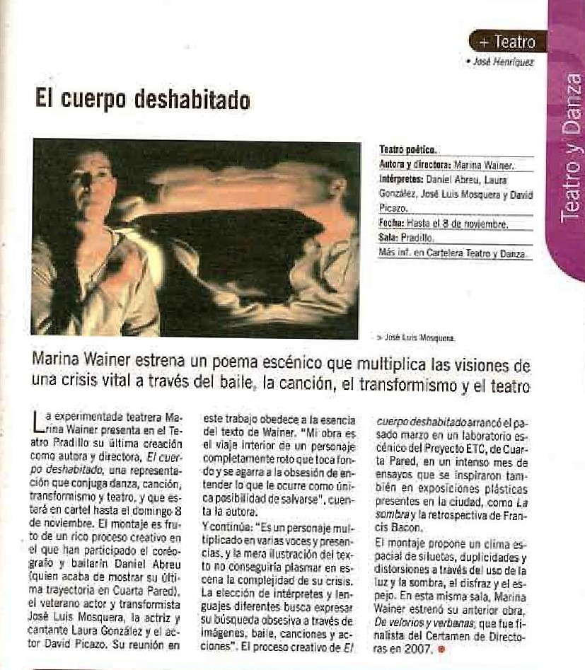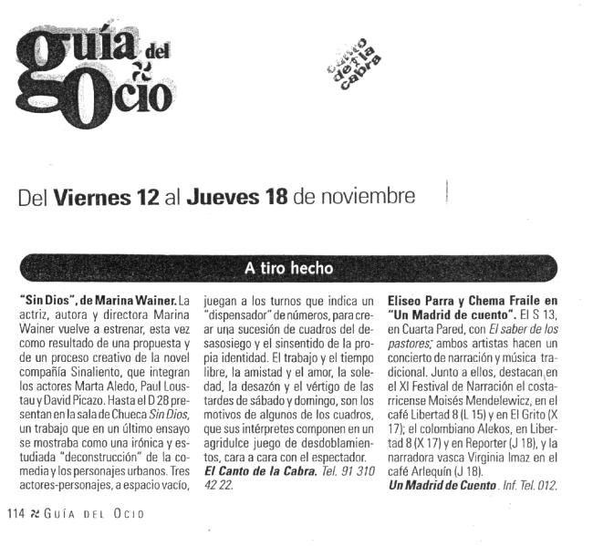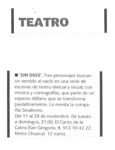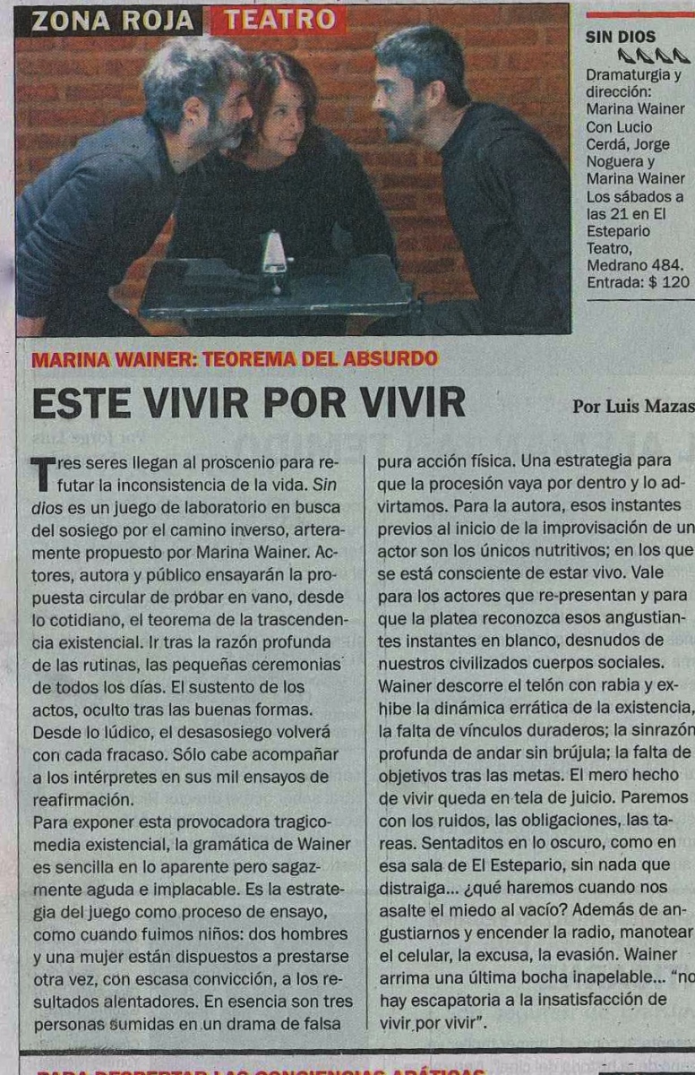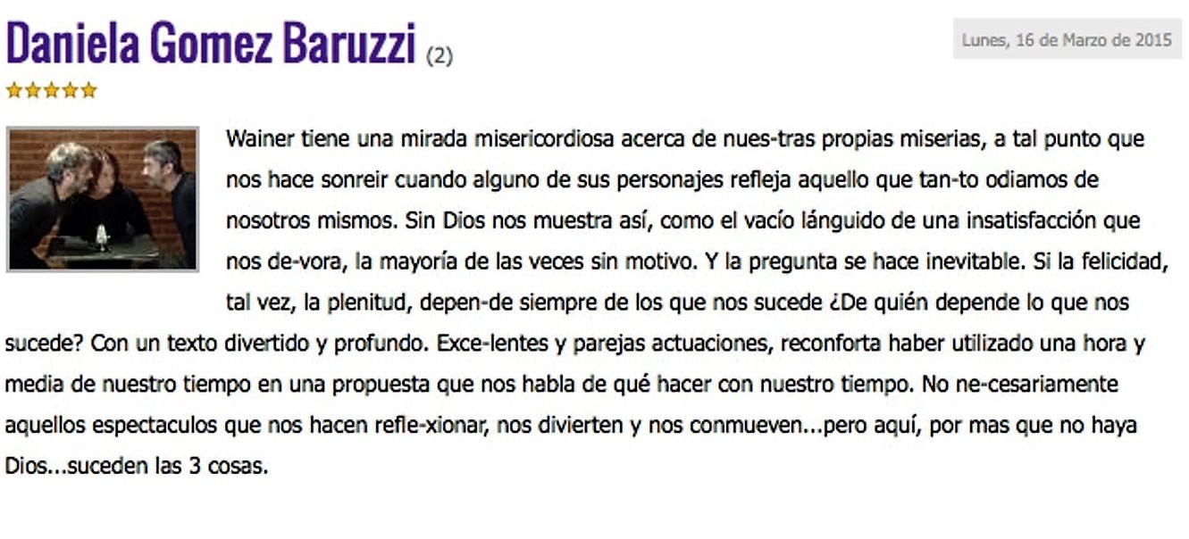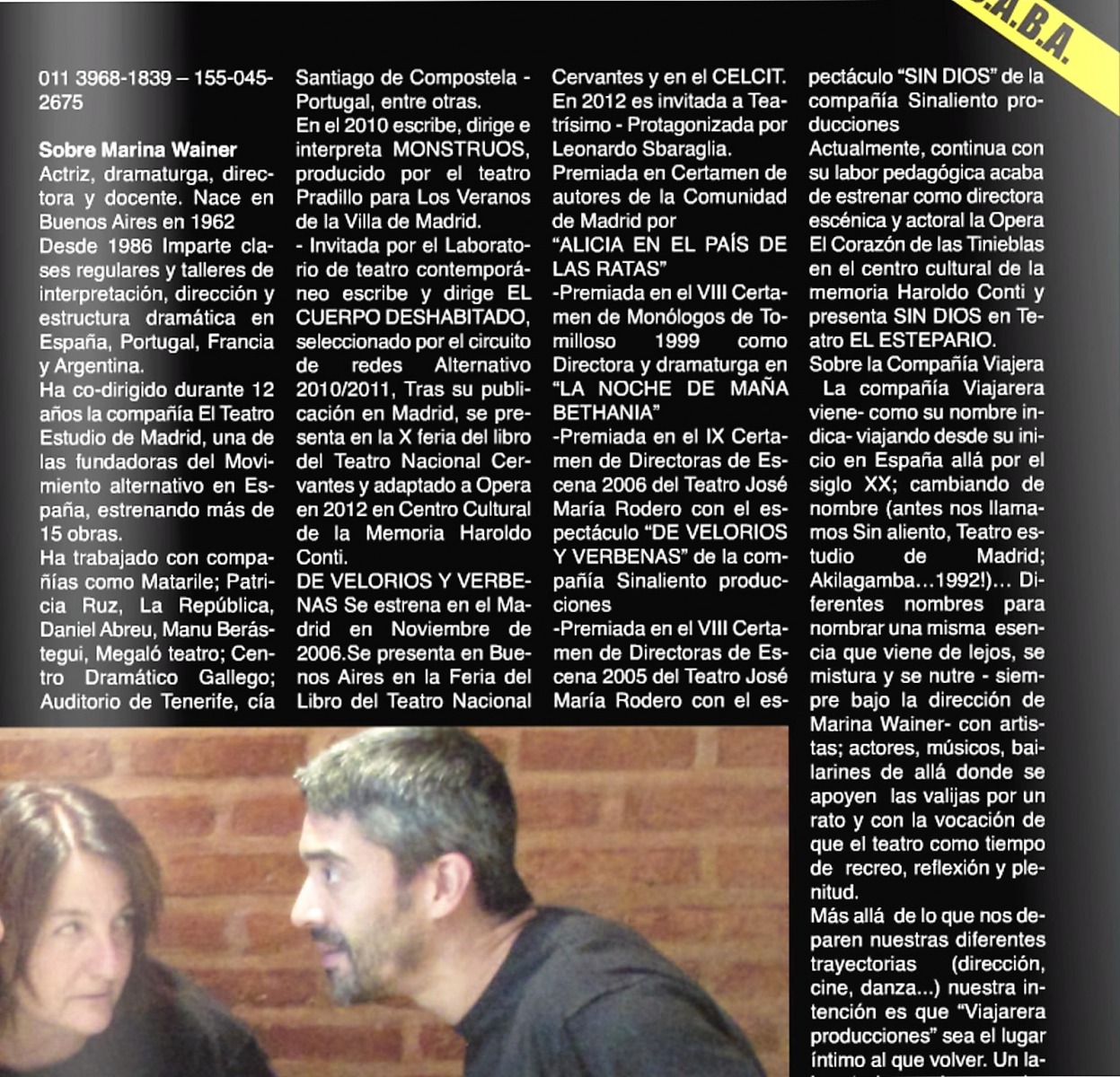 Funciones: domingos 6, 20 y 27 de septiembre a las 20hs